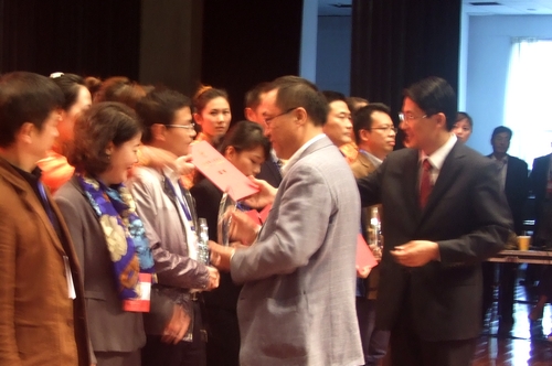 工信部節能與綜合利用司資源綜合利用處處長黃健忠、棗莊市政府副市長張兵向獲得十大科技創新獎及十大管理創新獎的企業或企業家頒獎。