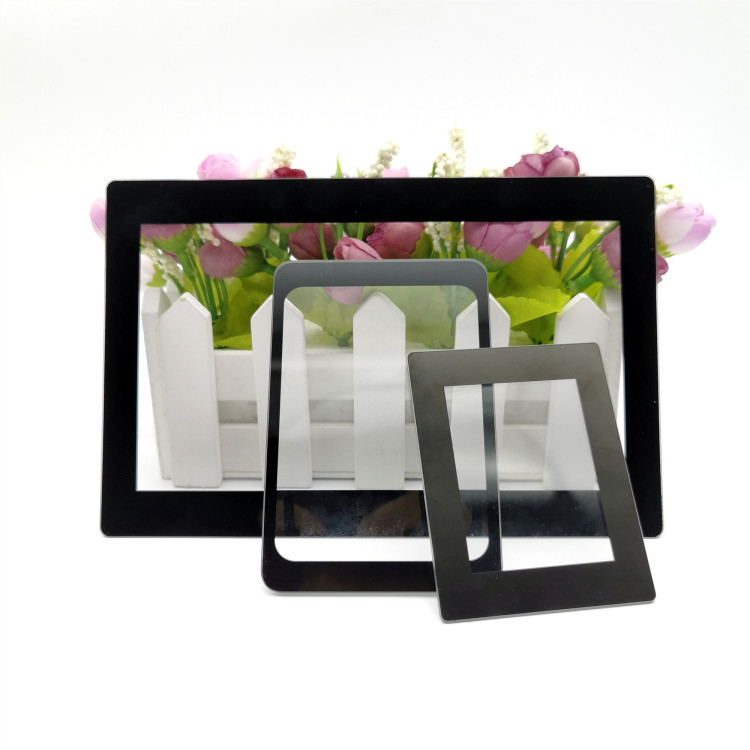 我司按產品要求進行邊框絲印,logo絲印,最多可進行5色絲印。客戶需要提供cad, pdf, coreldraw, ai 文件用來制作絲印網板,絲印網板都是一個顏色一塊網板。如果產品要表面防眩光或者增透,就還要在玻璃表面進行AG或者AR加工。