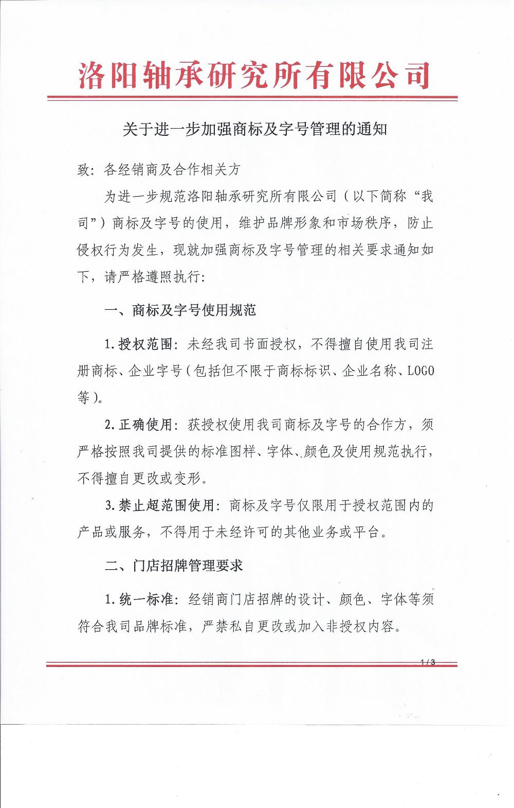 關于進一步加強商標及字號管理的通知